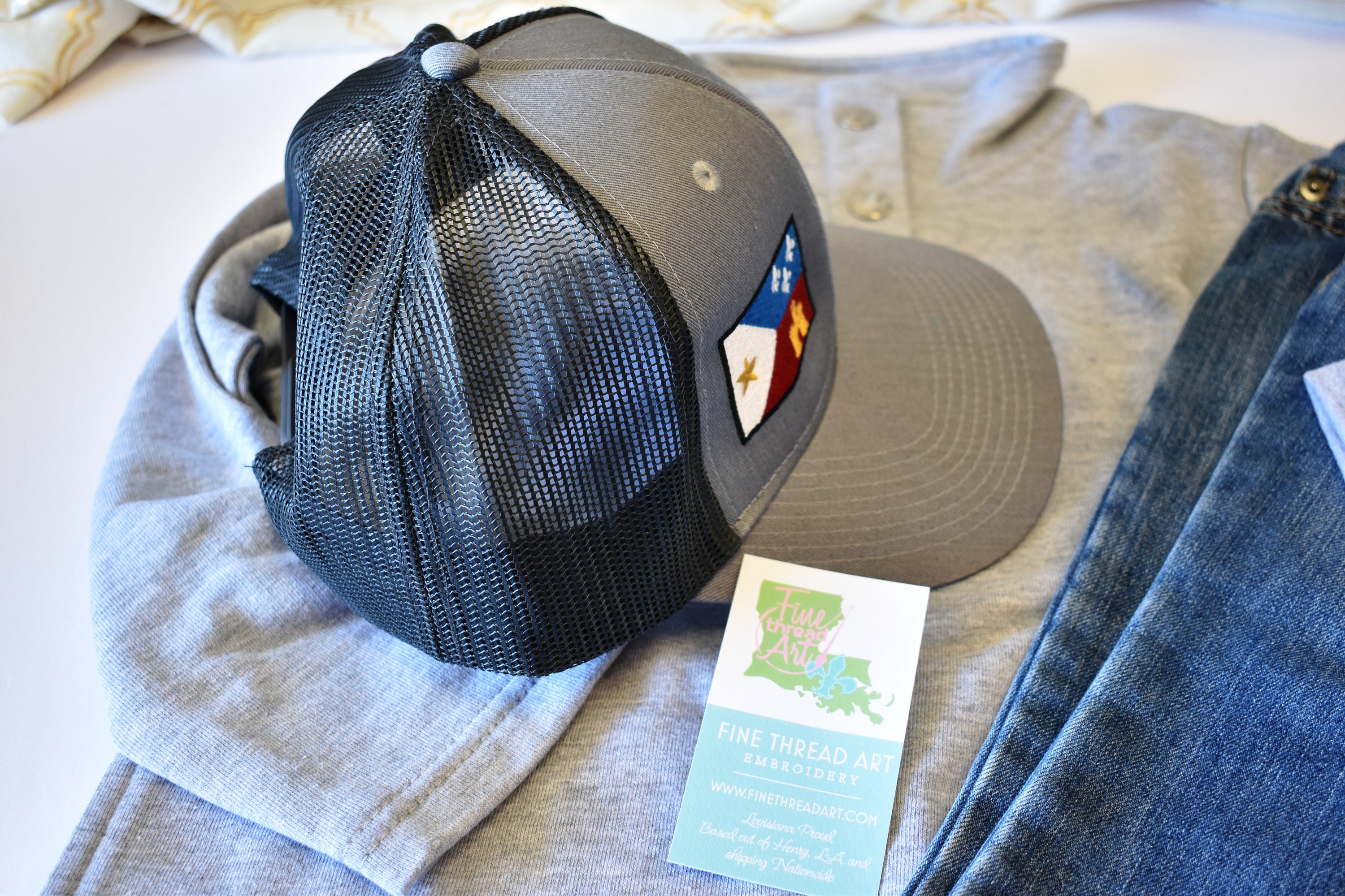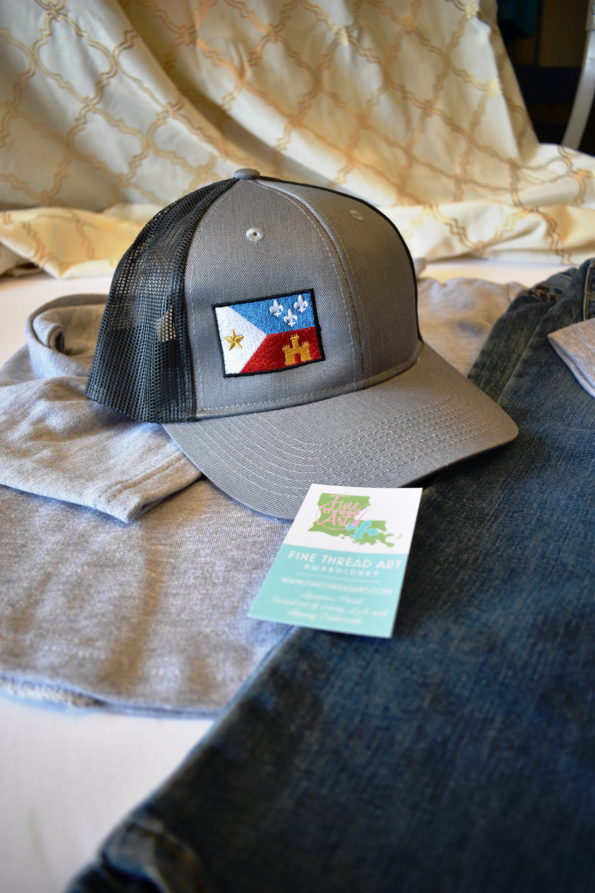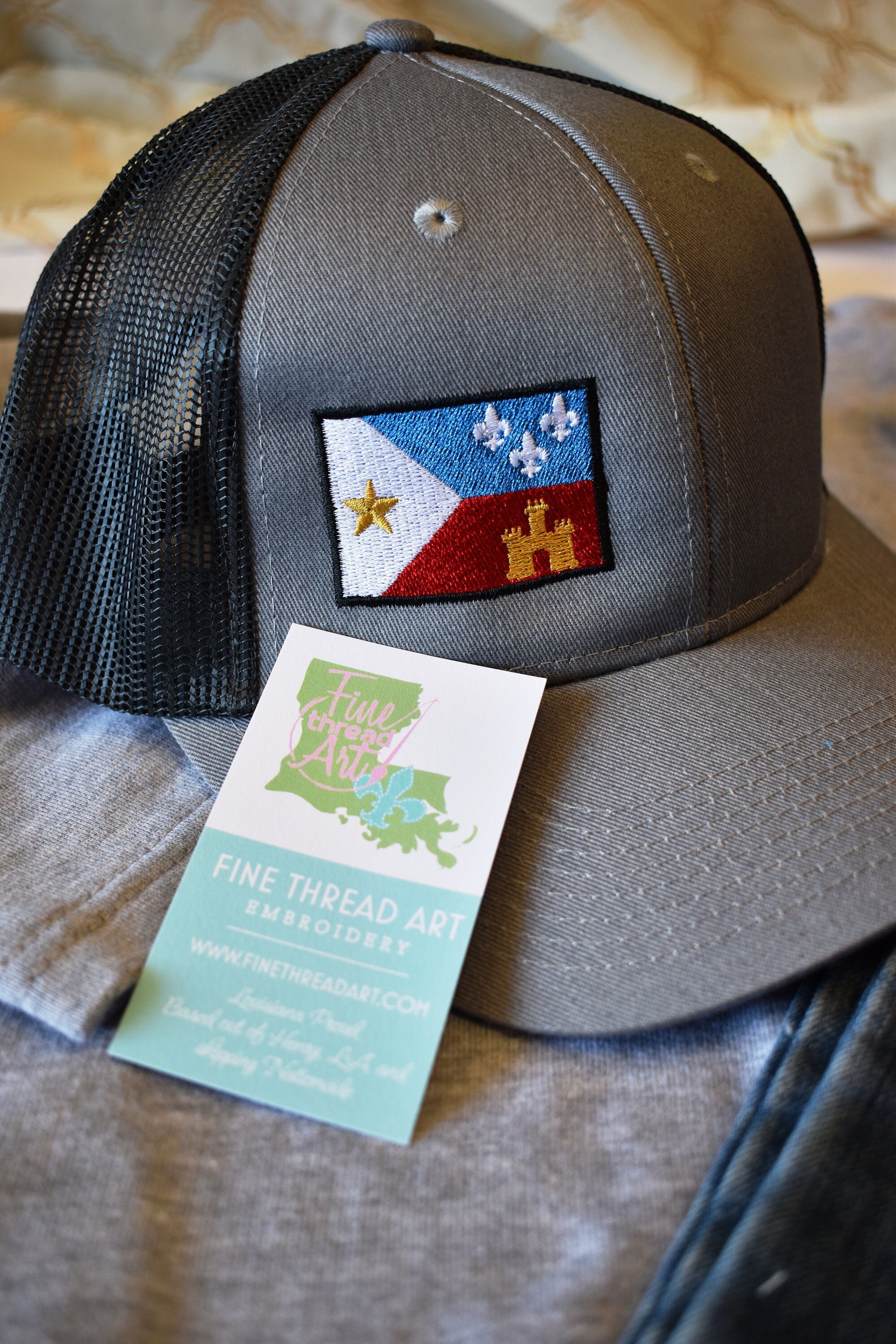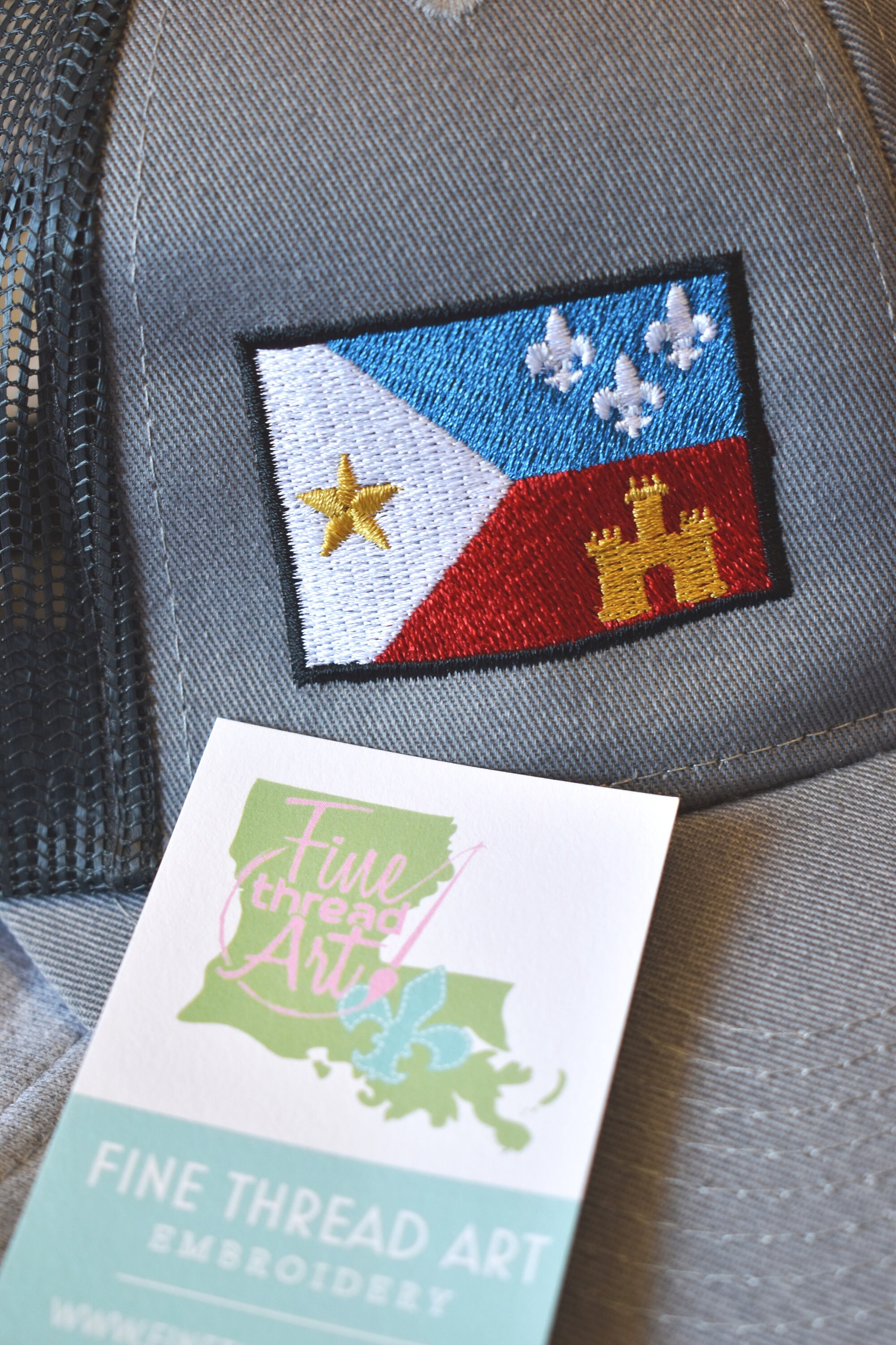 Want to see more Acadiana Flag hats? See here: https://www.etsy.com/shop/finethreadart?ref=hdr_shop_menu§ion_id=47839019
