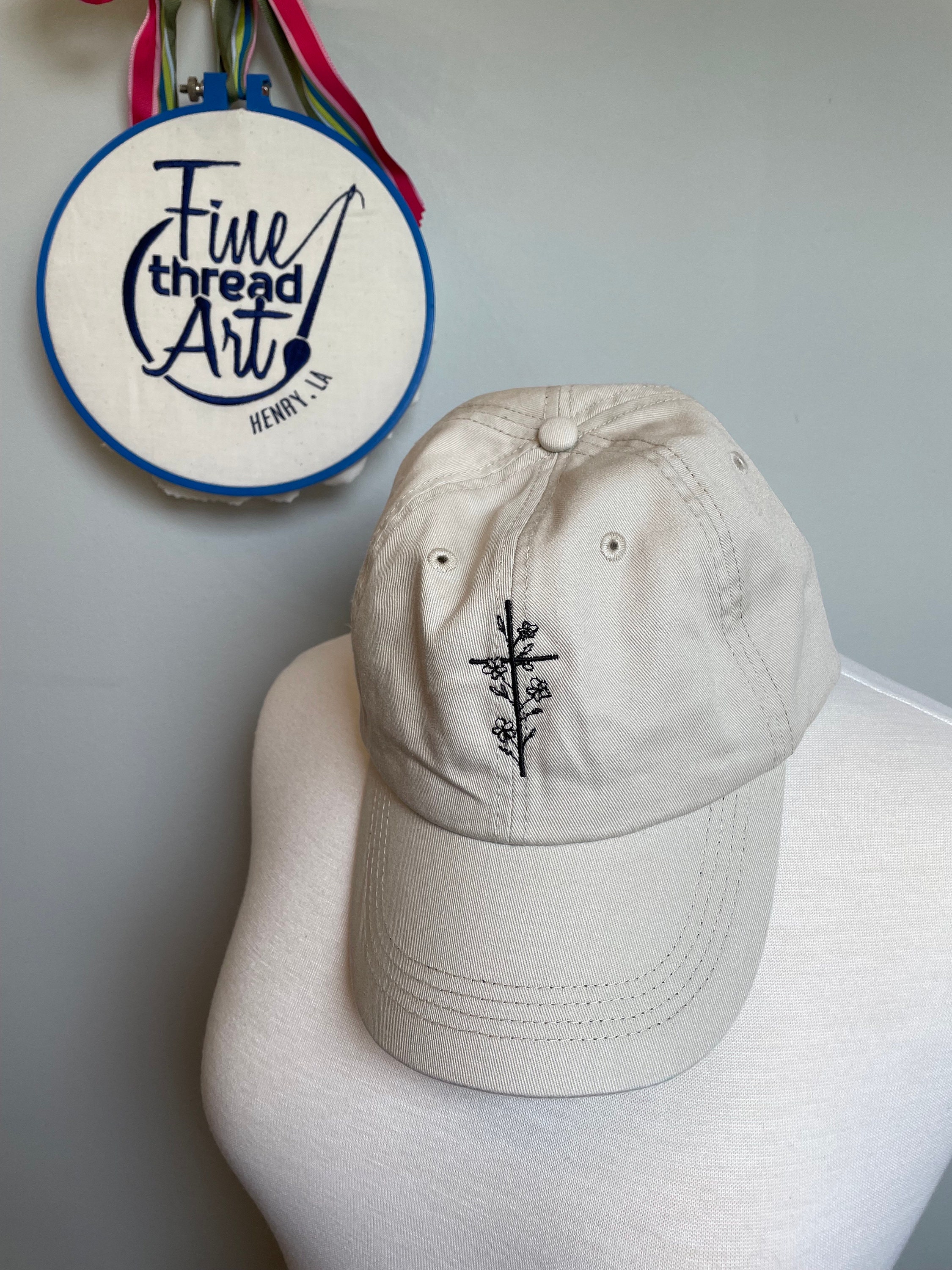 Unisex Adult Baseball Hat with Cross and Floral Flowers Vine Hat Ladies Rise Arise Catholic Christian Faith Women Minimalist Church