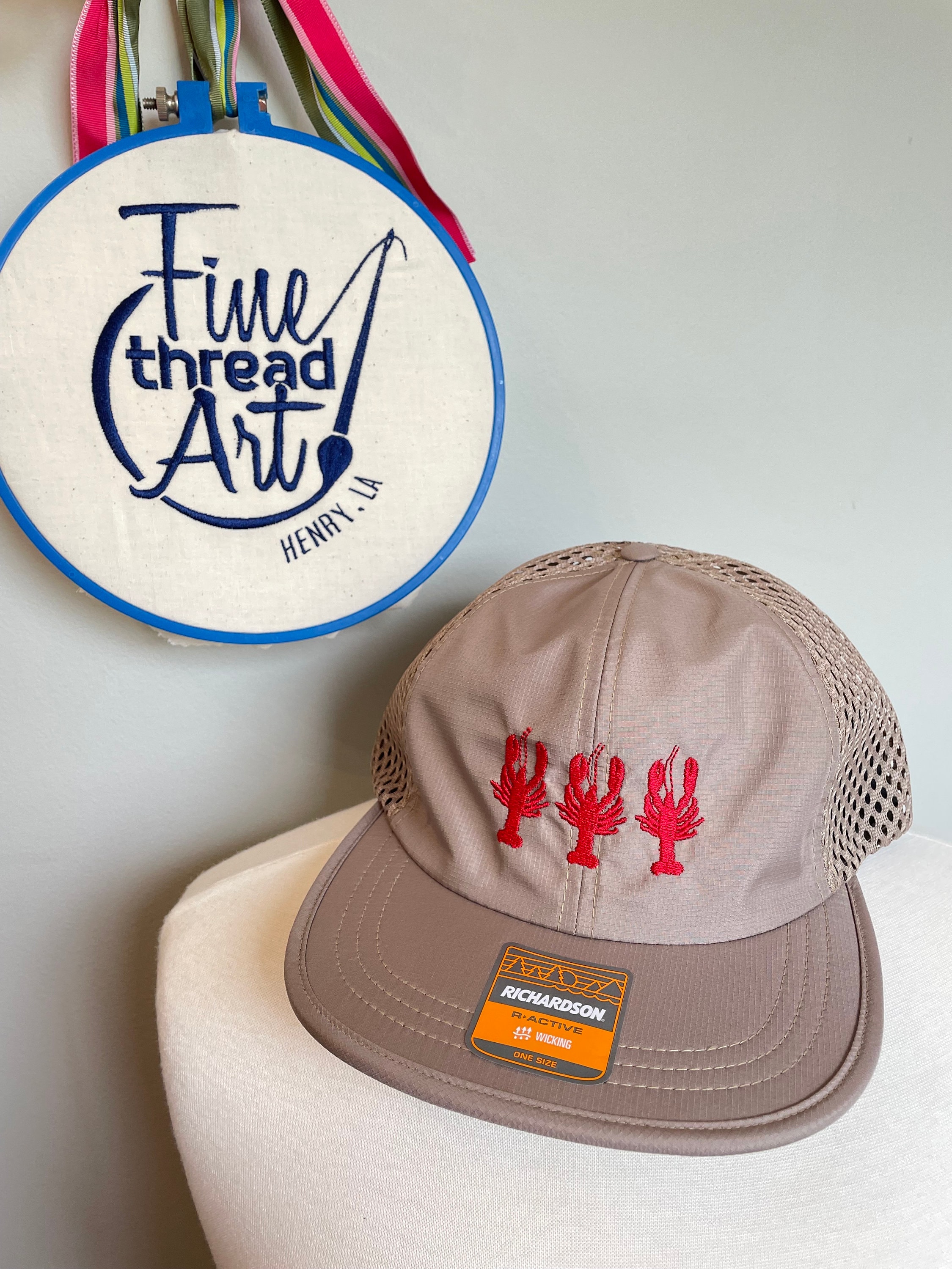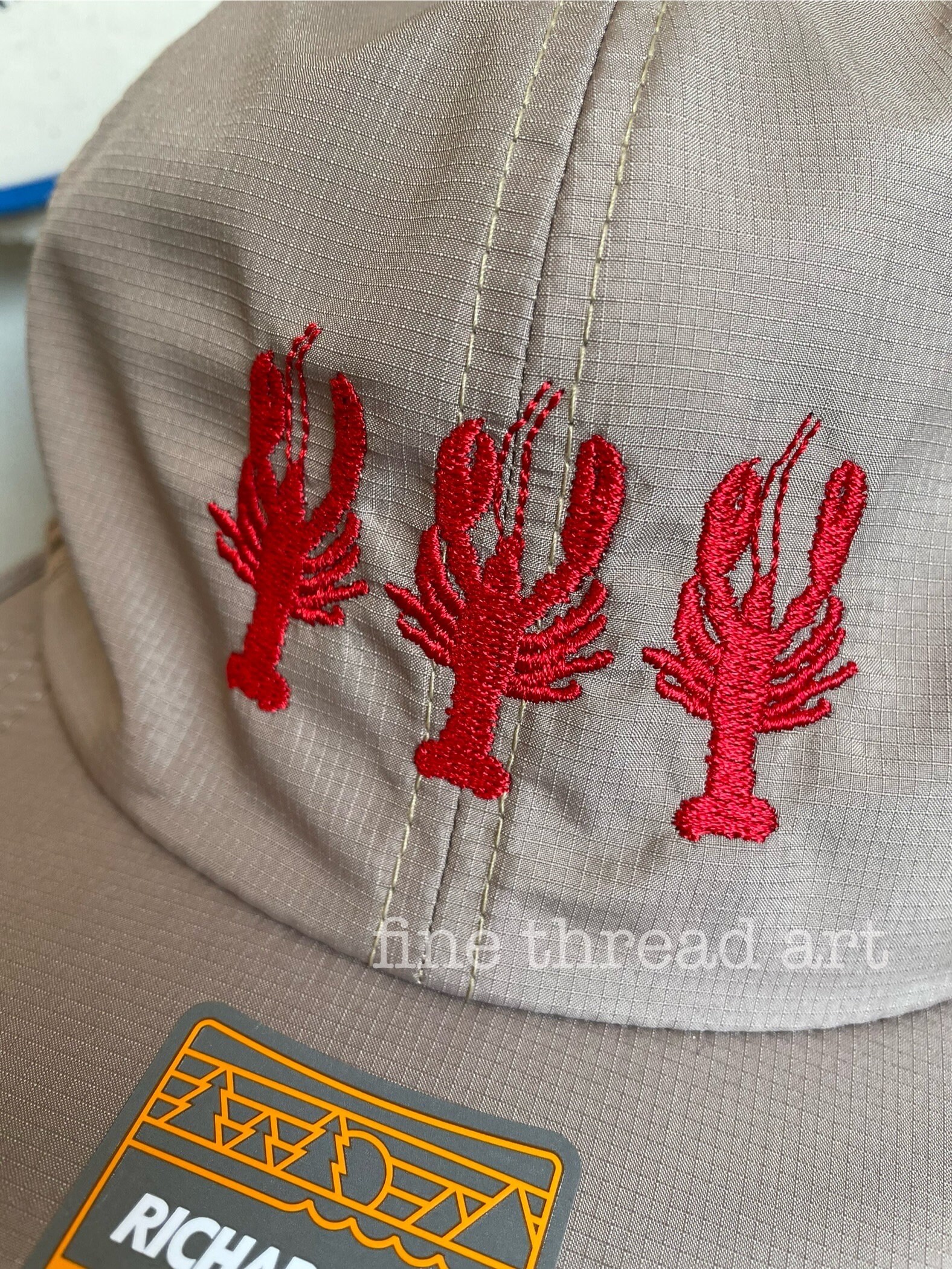 - Three crawfish (or lobsters!). You choose your thread color or colors.
