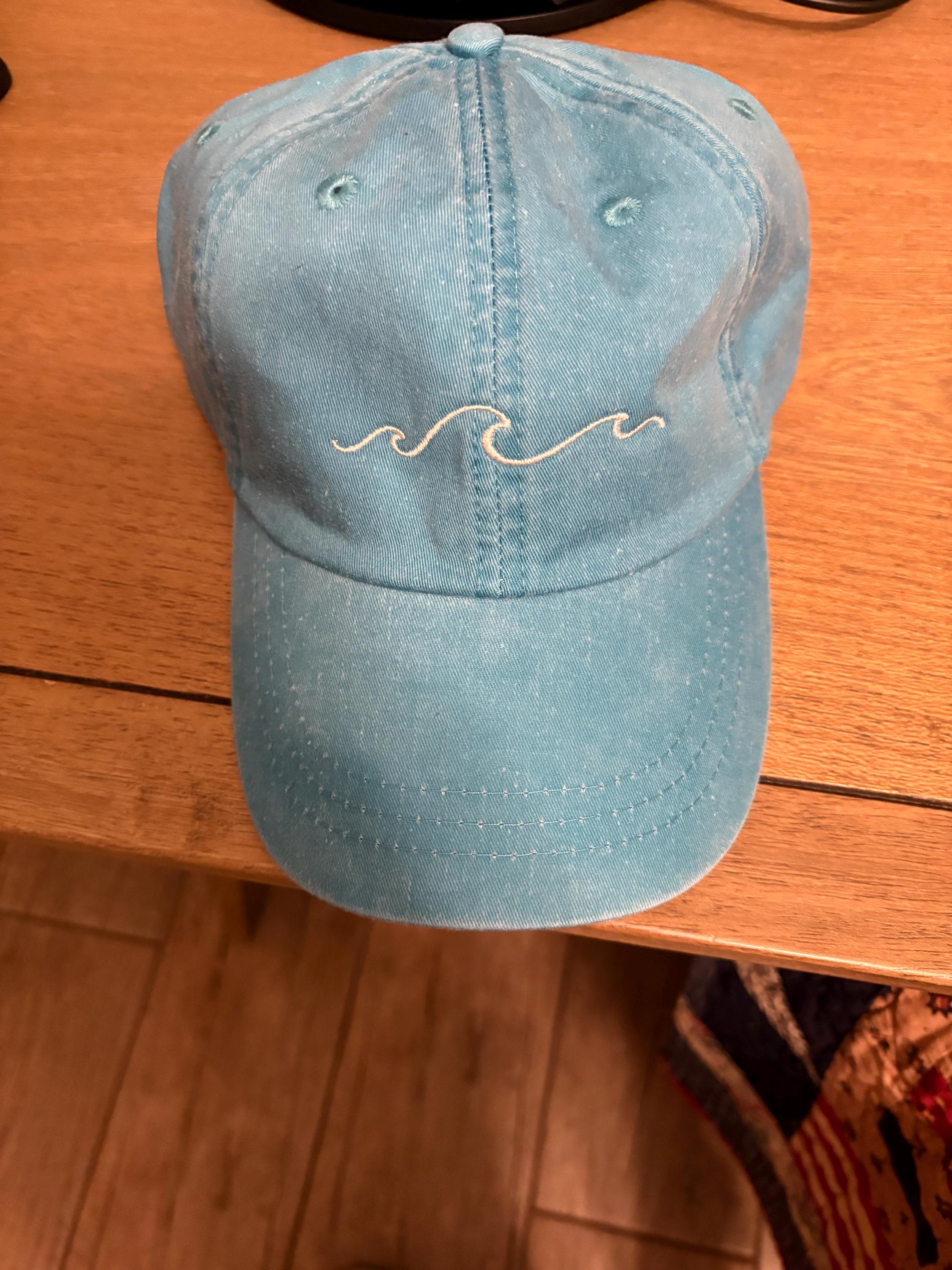 - Simple wave design in one color on front of hat