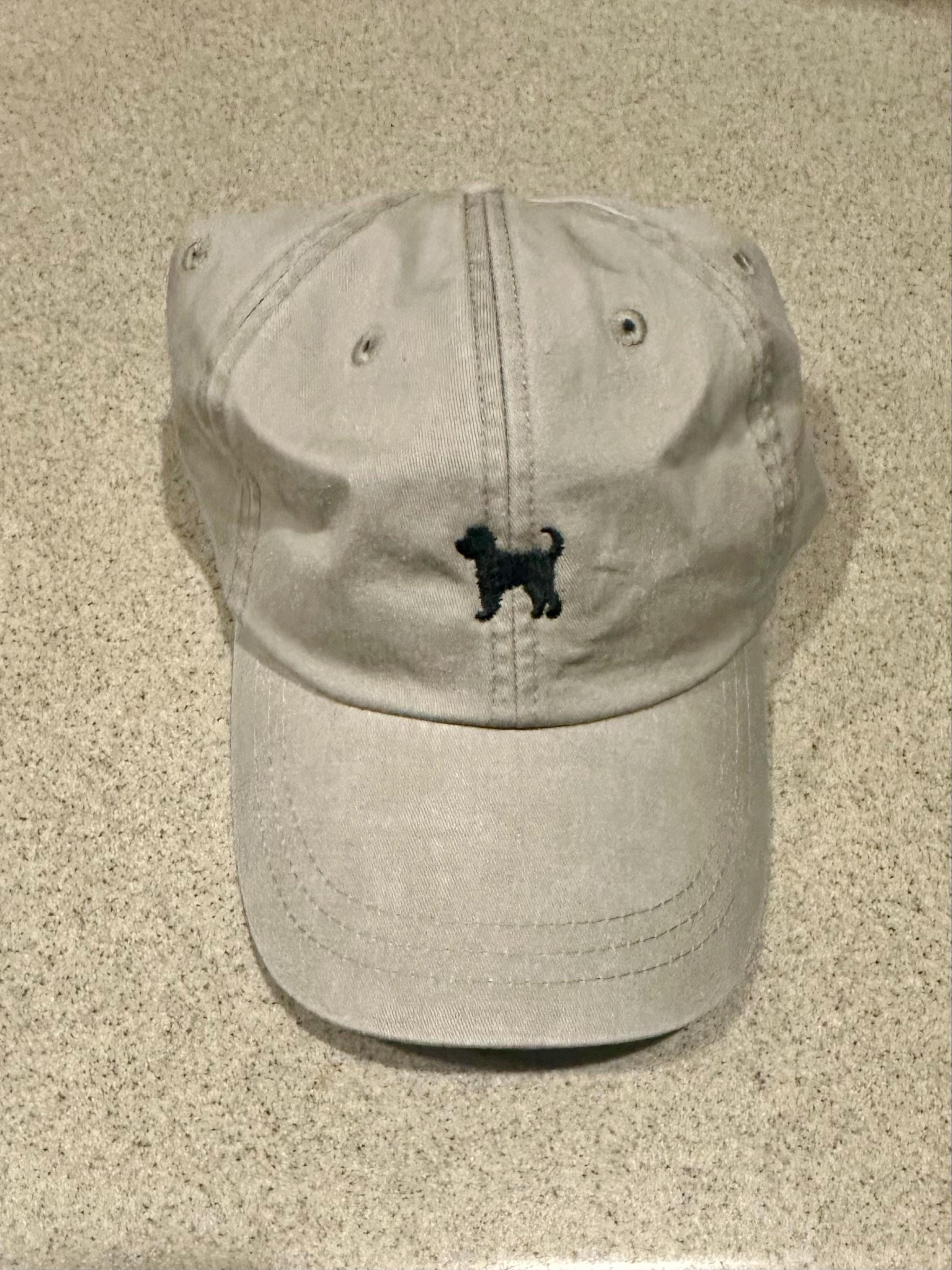 I ordered the color Stone with black embroidery. I would say it’s a griege that will go great with a lot of neutrals and black. My Bernedoodle is mostly black, so it’s not easy to find items that look like him. The simple design is super cute. The hat is a good quality, and it shipped very quickly. I got this for myself, but it would be a great gift for a doodle mom!