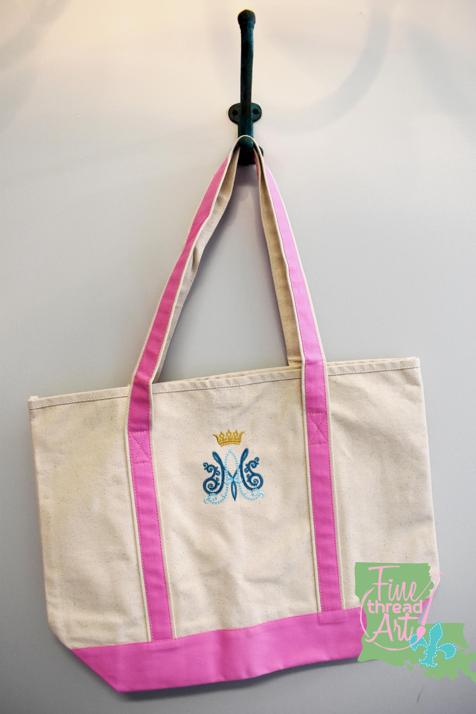 Traditionally, a ladies' monogram will have her last name in the center. This is our most common monogram option. The easiest way for both you and I to know what order you'd like your initials it to type them this way: Jane Elizabeth Smith, monogram: jSm. I'm totally okay with you just typing out the full name as well so that there's no confusion on how the monogram will be sewn.