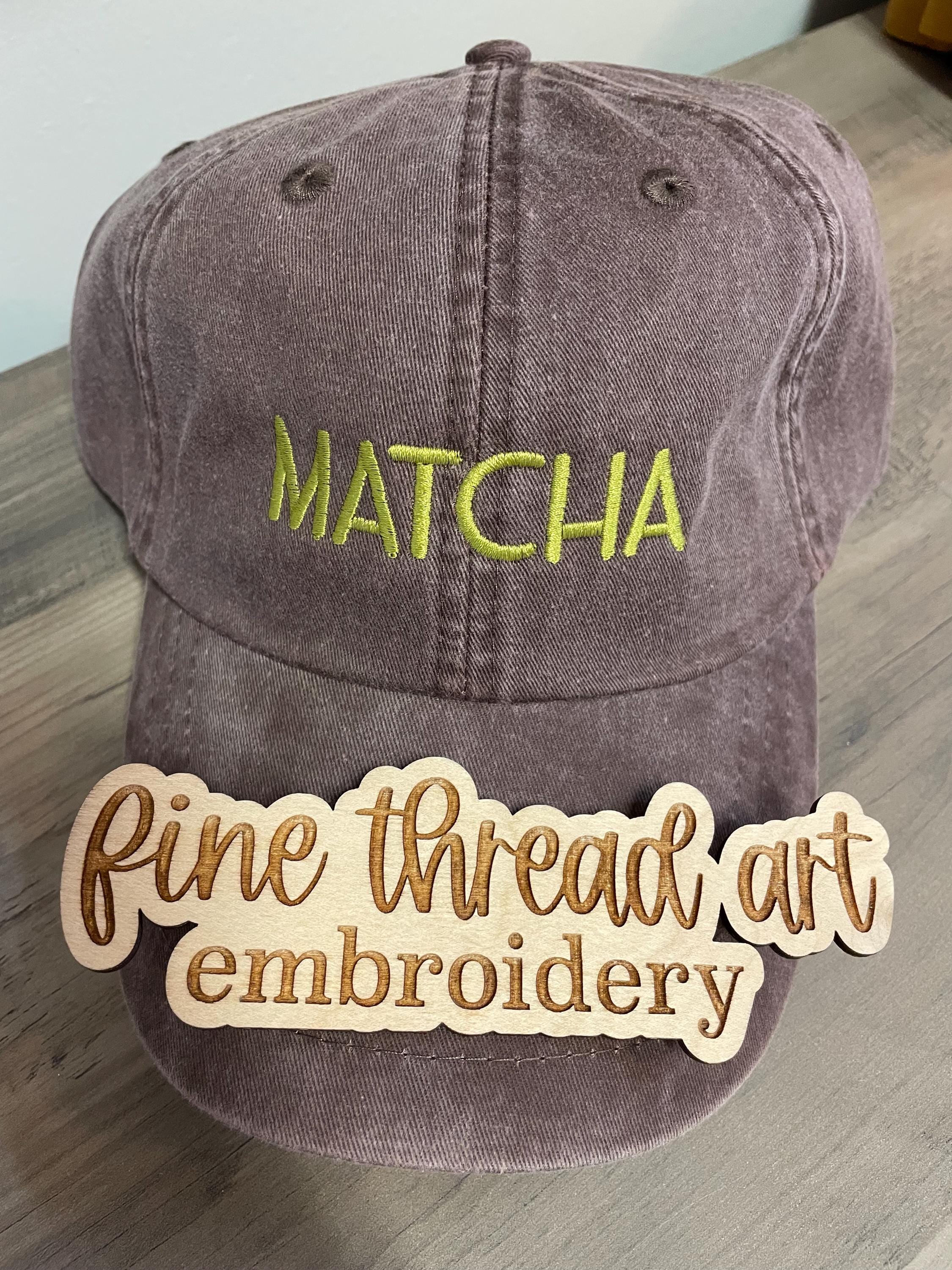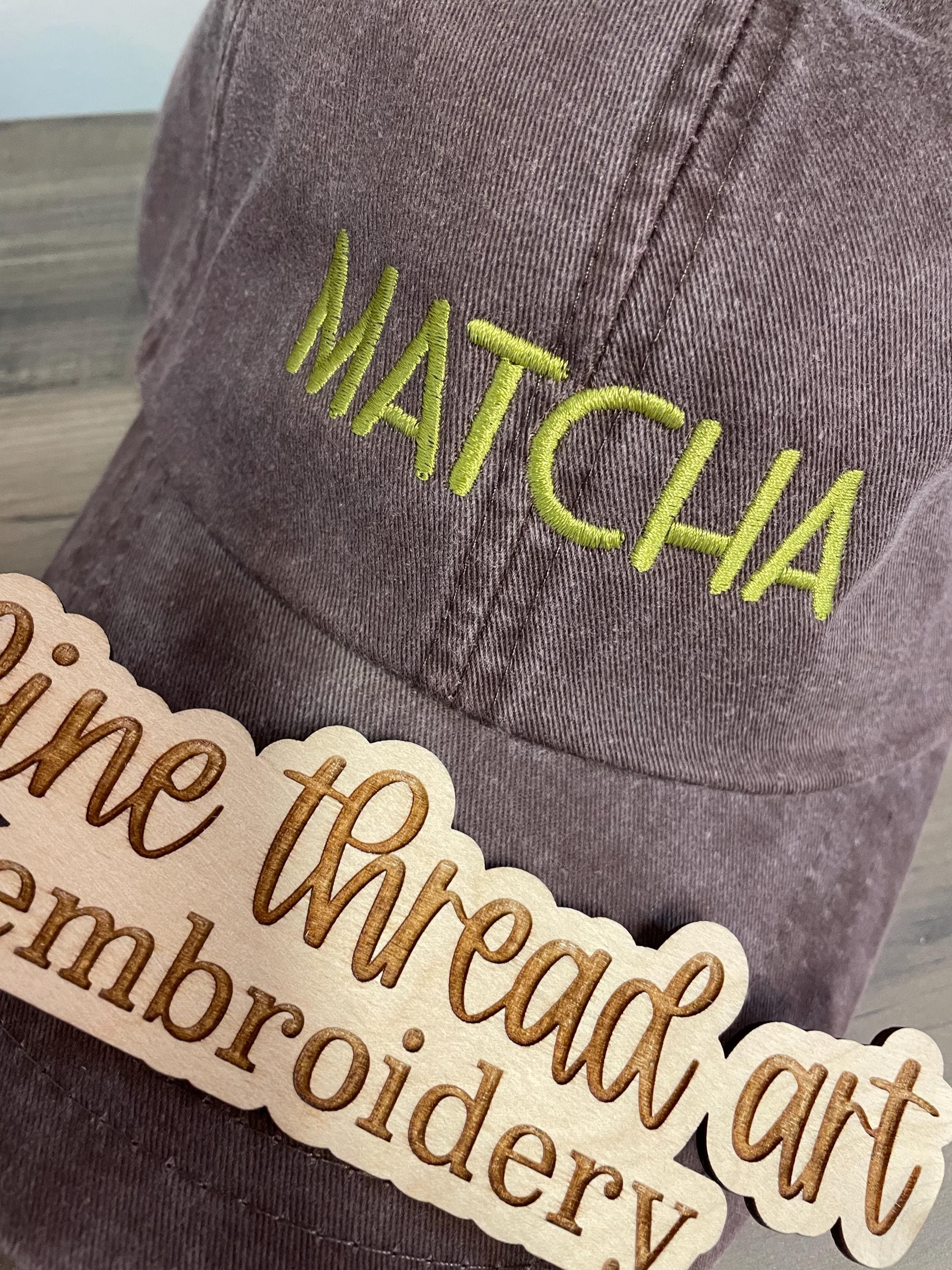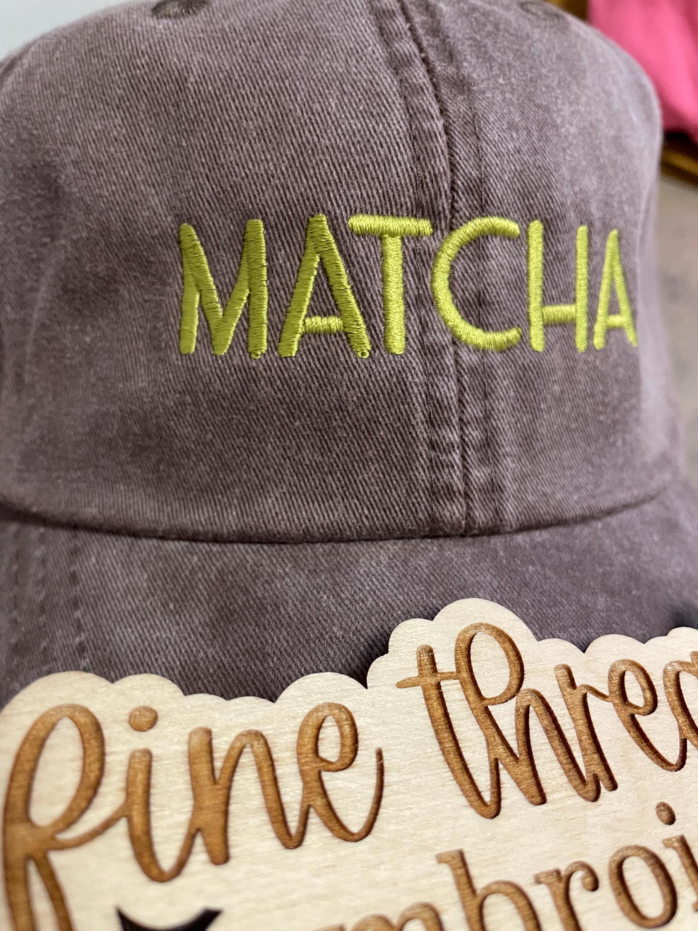 - MATCHA embroidered on the front center around 1” in height and about 3” in width