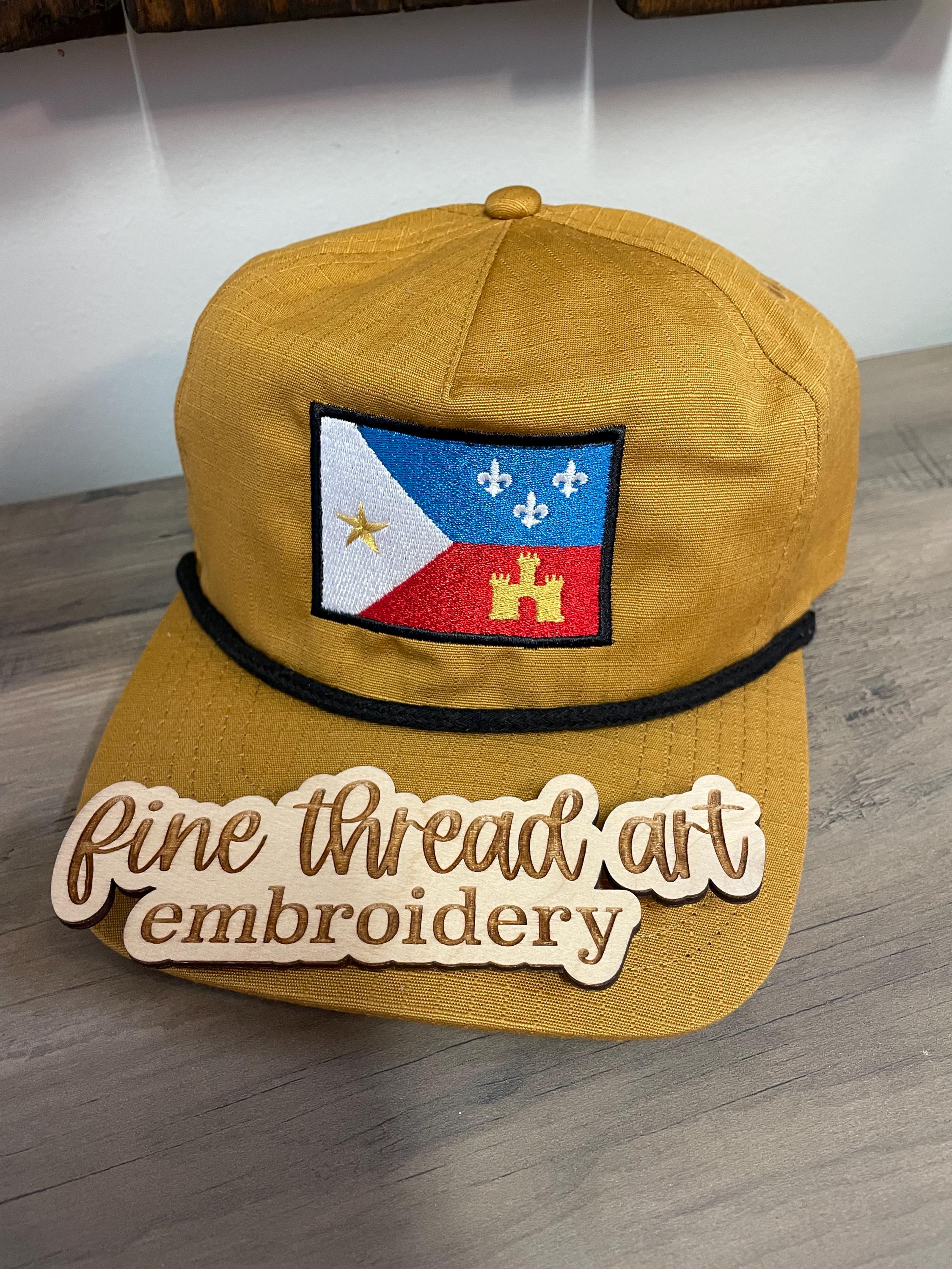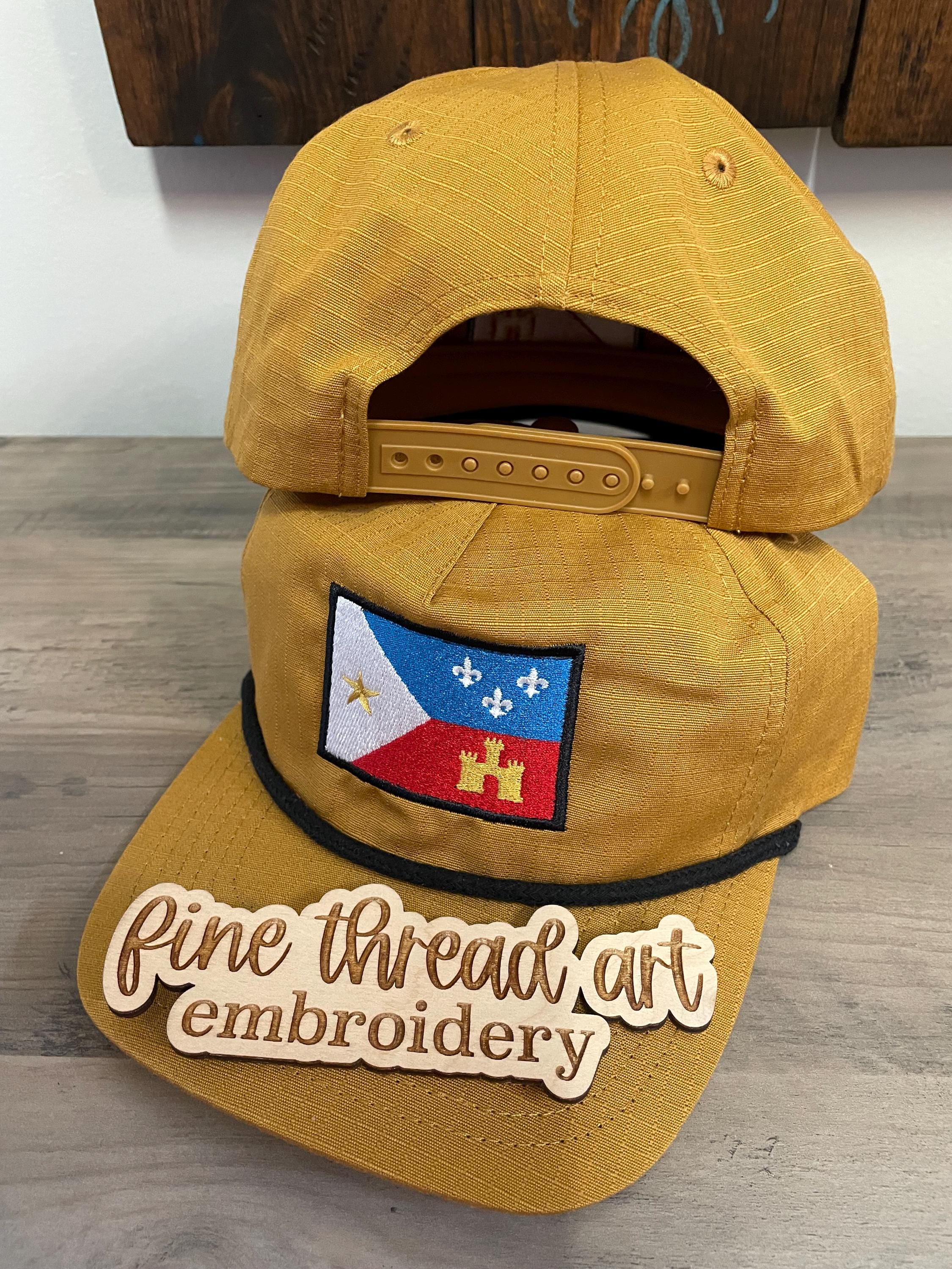 Adult Unisex Gold Yellow Rope Hat Acadian Flag Snap Back Flat Bill Louisiana Cajun